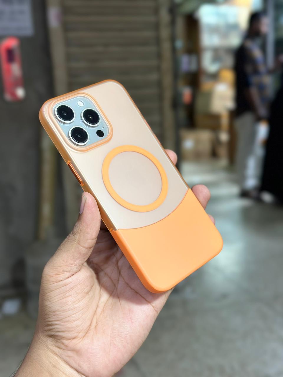 Premium Dual Part Matt Magsafe orange and black edition Case For iPhone 12 To 15 Pro Max